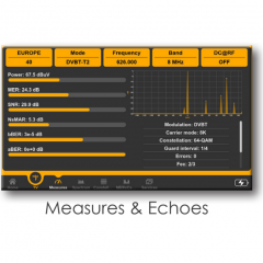 Mittausominaisuudet Taajuusalue 30–2700 MHz, mittausalue 5–120 dBµV ja mittaustarkkuus 0,1 dB. Digitaaliset mittaukset kattavat tehon, MER:n, BER:n, PER:n, LDPC:n, BCH:n ja kohinamarginaalin. Lisäksi kaiku-, esikaiku- ja mikrokaiku-analyysit reaaliajassa sekä konstellaationäyttö TV/CATV- ja SAT-signaaleille.