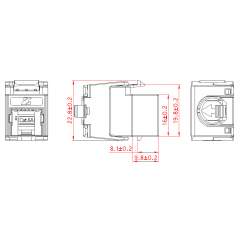Laatuantennin suojattu työkaluton RJ45 Keystone Cat 6A -liitin on suunniteltu suojatuille Cat 6A -kaapeleille, ja se täyttää 10GBase-T (500 MHz, luokka EA) vaatimukset. Liitin tukee myös PoE++ tyypin 4 IEEE 802.3 sovelluksia.